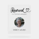 Ce panneau photo transparent commémoratif est un hommage parfait à vos proches qui vous observent du Ciel. La plaque acrylique "Réservée" sert à la fois de mémorial émouvant et de décor élégant. Idéal comme cadeau de sympathie ou souvenir mariage, il honore magnifiquement ceux qui occuperont pour toujours une place spéciale dans votre coeur.