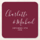 Elegant Signature Script Burgundy Wedding Square Paper Coaster