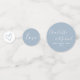 Elegant signature dusty blue wedding table confetti personalized with signature style names, special wedding date and message. Designed by Thisisnotme©