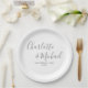 Elegant Signature Script Grey And White Wedding Paper Plate