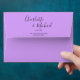 Featuring signature script names, this elegant return address envelope can be personalized with your names and address details in chic lettering on a lavender lilac orchid background. You can customize the background to your favourite wedding theme colour. Designed by Thisisnotme©