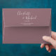Featuring signature script names, this elegant return address envelope can be personalized with your names and address details in chic white lettering on a mauve background. You can customize the background to your favourite wedding theme colour. Designed by Thisisnotme©