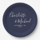 Elegant Signature Script Navy Blue Wedding Paper Plate