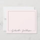 Pink and Grey Personalized custom name note cards with an elegant calligraphy signature script font and thin subtle line border in understated light grey and white.