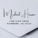 Elegant return address rubber stamp featuring your name in a stylish modern signature script and your address in simple typography.