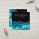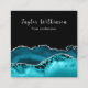 This elegant and glamourous business card features a teal blue agate marble background with faux silver glitter accents. The text combines handwritten script and modern sans serif fonts for a classy and sophisticated look. The sequins and glitter texture creates the perfect blend of chic and grunge.