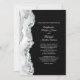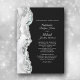 This wedding invitation uses a pretty border of faux agate in tones of silver, grey, white, and a touch of aqua blue. The border stands out against the black background at the right, which holds your custom text, also in silver. The back of the invitation is solid black. Elegant, with just the right touch of minimalism.