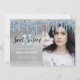 This modern invitation design features faux silver & blue dripping glitter, metallic texture and elegant calligraphy font. Add your favourite photo.