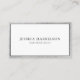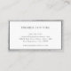 This simple, elegant, silver and black edged business card is modern yet classic. It's clean lines are polished and crisp. The font is understated yet luxurious.