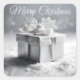 Elegant Silver Christmas Gift Box with Snowflakes Square Sticker