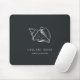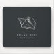 Island chic personalized mousepad for your business or home office features two lines of custom text in classic white lettering, on a soft black background adorned with a tropical conch shell illustration in faux silver foil for a beach glam look.