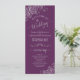 This beautiful wedding program features an elegant design with pale grey text on a plum purple background and lacy silver grey faux foil curls and swirls in the corners. The titles are written in fancy script calligraphy, and there is space for your ceremony and wedding party details, as well as a short thank you for your guest. Wonderful way to welcome your friends and family to your wedding celebration.