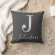 Elegant Silver Custom Monogram J Name Throw Pillow