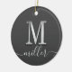 Elegant Silver Custom Monogram M Name Ceramic Ornament