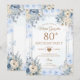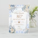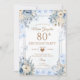 Elegant Silver & Dusty Blue Roses 80th Birthday Invitation