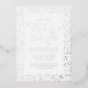 Elegant holiday party invitation with a border of silver foil snowflakes and pine branches on a white background. "Holiday Party" is displayed in a silver foil calligraphy script with your party details shown below. The snowflake holiday party invitation reverses to display a beautiful snowflake pattern.