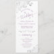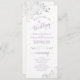 This beautiful wedding program features an elegant design with dusty purple or lavender text on a white background and lacy silver grey faux foil curls and swirls in the corners. The titles are written in fancy script calligraphy, and there is space for your ceremony and wedding party details, as well as a short thank you for your guests. Wonderful way to welcome your friends and family to your wedding celebration.