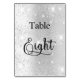 Elegant silver glitter calligraphy table eight 8 number