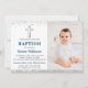 Elegant Silver Glitter Cross Boy Baptism Photo Invitation