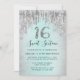 This modern invitation design features faux silver dripping glitter metallic texture, aqua blue mint & turquoise background and elegant calligraphy font. Add your favorite photo.