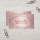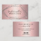 This gorgeous makeup & hair business card design features faux silver glitter frame, rose gold metallic texture and elegant calligraphy font.