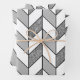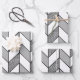 These wrapping paper sheets feature an elegant chevron design with a geometric herringbone pattern in white, grey, and faux silver glitter with black lines.