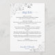 Elegant Silver Lace Dusty Blue on White Wedding Menu