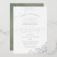 This beautiful wedding invitation features both sage green and real foil silver printing on a classic white background. The beautiful design has lacy script calligraphy with floral lace filigree in the corners. Stylish, elegant, sophisticated, and chic, this invitation is fancy and glam. The perfect choice for elegance, style, and class.