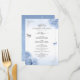 Créez vos propres menus uniques et élégants qui incluent de l'espace supplémentaire à l'arrière pour inclure les détails de votre programme et de votre événement. Ces menus de programme de quinceanera personnalisés sont conçus pour une fête de coing (XV) ou de 16 ans sucrés, mais peuvent également travailler magnifiquement pour les mariages bleus poussiéreux, un baby shower de princesse Cendrillon, douche de mariée d'hiver et d'autres occasions spéciales. L'art floral de Raphaela Wilson dépeint des roses d'aquarelle bleu clair, accentués d'argent faux métallique, ainsi qu'une tiare à couronne étincelante de parties scintillant, des confettis de papillon, et une bordure fantaisie au-dessus d'une texture papier parchemin blanc. De nombreux éléments d'illustration sont ajustables sur ces cartes de menu do-it-yourself personnalisées lorsque la taille est modifiée. Si vous souhaitez modifier le script de calligraphie moderne, le style typographique peut également changer. Assurez-vous d'ajouter votre texte personnalisé à l'avant et à l'arrière des cartes, y compris le nom de l'honneur, le type de célébration et les entrées/plats. Ces cartes de programme de mariage bleu clair et argent peuvent ajouter une touche spéciale à votre décor et à vos tables d'hôtes - même inclure un message de remerciement à l'arrière au lieu d'un programme d'événements si vous préférez. Gardez le design vintage de conte de fées orné ou supprimer des graphiques pour aller style minimaliste... A vous de choisir ! Catégorie: menus de mariage élégants avec fleurs ; des menus mariage aquarelle avec roses ; et des menus mariages pour le dîner de répétition. Couleurs du thème Silver and light baby blue quinceañera : pastel bleu, gris clair, argent foncé et blanc.