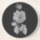 Elegant Silver Peony Black Floral Drink Coaster