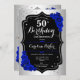 Elegant Silver Royal Blue Photo 50th Birthday Invitation