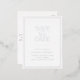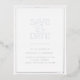 This is an elegant, minimalist and modern save the date invitation on a postcard. It is a simple and luxurious typography design in striking and classic silver and white. Please contact the designer for any queries about this design.