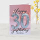 Make their milestone magical with this 30th birthday greeting card—a perfect blend of charm and personalization. The front of the card dazzles with the number “30” adorned in shimmering silver sequins, floating like glittering stars on a gentle pink canvas enhanced by a soft bokeh effect. Complemented by elegant script celebrating the special day, every detail invites smiles and cheer.