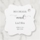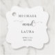 Minimal and elegant wedding favour tag with faux silver calligraphy script. Customizable