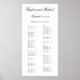 Elegant, simple, alphabetical, wedding seating chart for letters A-M with calligraphy and serif typography in black and white.