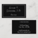 This simple, elegant, and modern business card design features a black background, and a double-line white border. It could be used by a professional such as a barrister, solicitor, lawyer or attorney. The name, profession and contact details can be personalized.