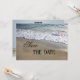 Une carte à la fois simple et élégante Save the Date avec des vagues sur la plage à l'avant et un design bleu poussiéreux à l'arrière. Le modèle de code QR peut être facilement customisé en ajoutant votre propre URL de site Web.
