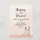 This elegant simple wedding invitation is perfect for a modern wedding. The romantic design features a bride and groom illustration and black calligraphy on a white background.
