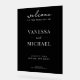 Wedding welcome sign featuring elegant modern typography design in black and white colour.