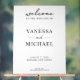 Wedding welcome sign featuring elegant modern typography design in black and white colour.