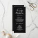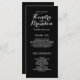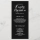 Elegant Wedding Programs. White text on black background. Design by Elke Clarke © Available at www.zazzle.com/monogramgallery. Customize with your background colour and all your personal information to create a simple yet sophisticated program which your ushers can hand out as your guests enter the church or are seated where the ceremony will take place. It helps people follow along during the ceremony but also acts as a keepsake for your guests. You can use the template fields to fill in the suggested information about your wedding party and order of service and thank you message or select "customize it" and use the edit menu to change the text spacing, fonts, colours as you wish to create your own wedding programs.
