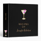 Elegant Simple Black Gold Monogram Cocktail Recipe Binder