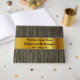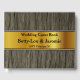 This respectable wedding/marriage party guestbook features the message "Wedding Guest Book", the personalized names of the married couple and the wedding party date. It also features a background with a rustic faux wood like pattern, and a faux gold like banner. It could be used to record happy wishes for the newly married couple.