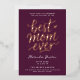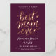 This stylish anniversary | birthday invitation showcases a refined gold foil unique calligraphy design featuring the phrase “Best Mom Ever” on a sophisticated plum burgudy background. The layout blends modern minimalism with timeless elegance, while the classic typography beautifully highlights the mom’s name with white. Perfect for a stylish woman anniversary party, this template is easily customizable, making it a seamless choice for your special day.