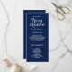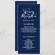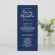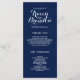 Elegant Wedding Programs. White text on navy blue background. Design by Elke Clarke © Available at www.zazzle.com/monogramgallery. Customize with your background colour and all your personal information to create a simple yet sophisticated program which your ushers can hand out as your guests enter the church or are seated where the ceremony will take place. It helps people follow along during the ceremony but also acts as a keepsake for your guests. You can use the template fields to fill in the suggested information about your wedding party and order of service and thank you message or select "customize it" and use the edit menu to change the text spacing, fonts, colours as you wish to create your own wedding programs.