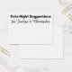 Here's a fun accessory to pick up for your engagement party or joint shower: date night suggestion cards on which guests can write personal notes to the bride and groom. On the front you read "Date Night Suggestions" in a bold, sans-serif font; this typeface is editable so you can choose another if you prefer... or even write a different message. Below there's a place for your names; these appear in a pretty script that is also easy to change. Change the background to any color you prefer!. Please do not hesitate to reach out to me if you have special requests or need other items. I am also happy to help with customization of these cards if you need. //