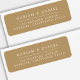Elegant minimal gold wedding return address label that you can personalize and send out for your wedding party celebration. The names and address are set using stylish classic font typography. Text colors can be changed using the edit menu.