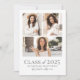 A simple and elegant boho-inspired graduation announcement featuring photo collages on both the front and back for a personalized touch. The front showcases three photos arranged in a clean collage format, framed by an elegant border with soft grey text beneath. "Class of 2025," the graduate's name, and school are displayed in understated, sophisticated fonts.