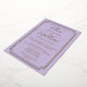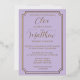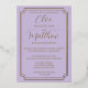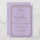 Elegant timeless lilac and lavender wedding invitation with gold script and serif lettering inside a frame