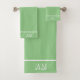 Élégant simple et élégant monogramme blanc sur le kit de serviettes de bain vert. Monogramme seulement d'un côté !